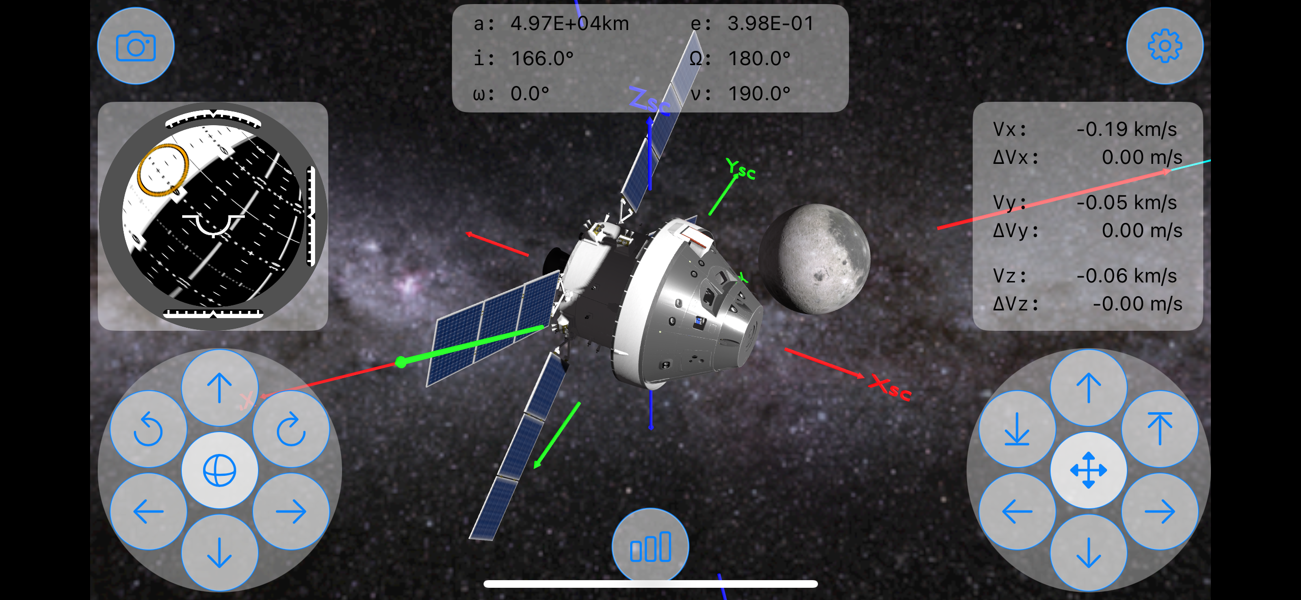 One of best choices I made was to use SwiftUI, specifically SwiftUI’s SceneView, and not fall back to UIKit or UIViewRepresentable, for displaying the content using SceneKit. Yes, it meant learning a lot of things of which I had no idea how to do. Like building from scratch inertia in a DragGesture in SceneView. Or a SceneView in a SceneView, each with their own SCNSceneRendererDelegate implementation. Getting a line–there is no SCNGeometry for a line in SceneKit–that would give a visualization for users as to Orion’s past as well as upcoming orbit path. And getting instance objects whose classes conform to ObservableObject to “publish” state changes to other instance objects whose classes conform to ObservableObject while still taking advantage of Combine’s @Published vars.